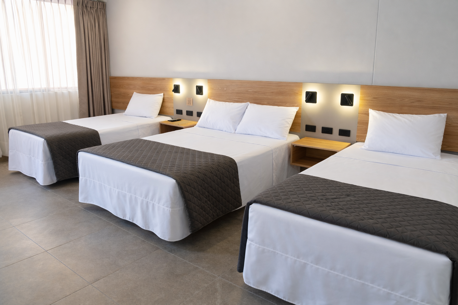 Spacious and practical, this room features two twin beds and a private bathroom—perfect for small groups or families.
