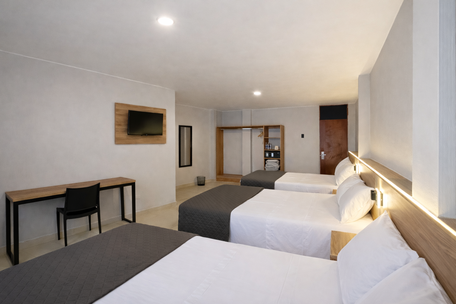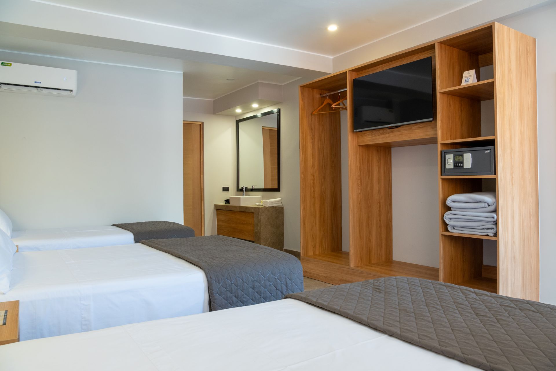 Designed for comfort, this room includes three beds and a private bathroom—ideal for small groups or families.