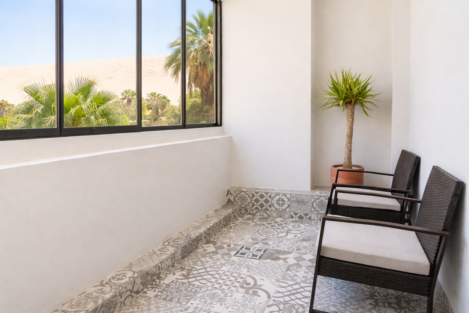 Sleep peacefully surrounded by soft textures, calming tones, and the stillness of the Huacachina dunes. Each room is a gentle retreat designed to soothe the senses—where natural light, refined details, and desert serenity come together for deeply restorative rest.